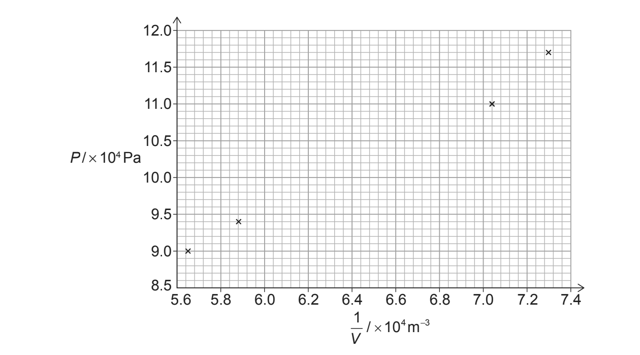 (iii) If the relationship \(PV = K\) holds, then \(P = K \times \frac{1}{V}\). Therefore, the graph of \(P\) versus \(\frac{1}{V}\) should be a straight line that passes through (or is close to) the origin. Alternatively, one could evaluate \(PV\) for each data point to confirm they are approximately constant.