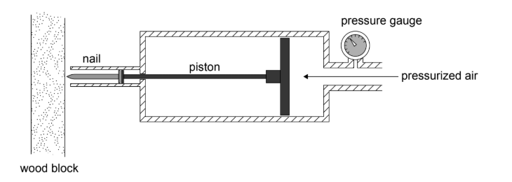 | Pressure \(P/kPa\) | Nail depth in wood \(d/m \times 10^{-3}\) |