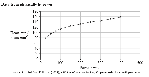 The data in the graph was obtained from a physically fit rower using a calibrated rowing machine and a heart rate monitor.