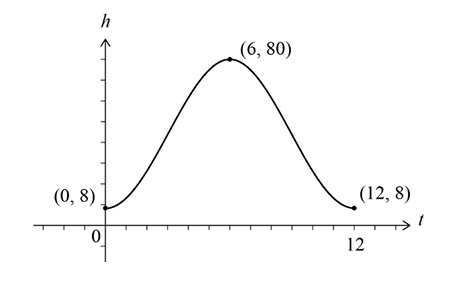 • Maximum point: \( (6, 80) \)