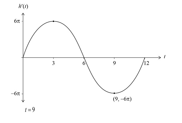 \( \boxed{h'(t) = 6\pi \sin\left(\frac{\pi}{6}t\right)} \)