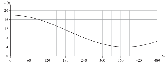 The water depth, \( w \) metres, in a specific harbor can be represented by the function \( w(t) = a \cos (bt) + d \) where \( t \) is the duration, in minutes, after 06:00.
