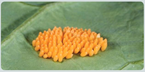 Ans: Adults survive through the winter; mate and lay eggs in May/June/early summer; larvae hatch and grow in June/July/mid–summer; pupation in late July/early August; adults emerge from pupae in August.