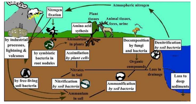 ● Main source of nitrogen is from anaerobic, denitrifying bacteria