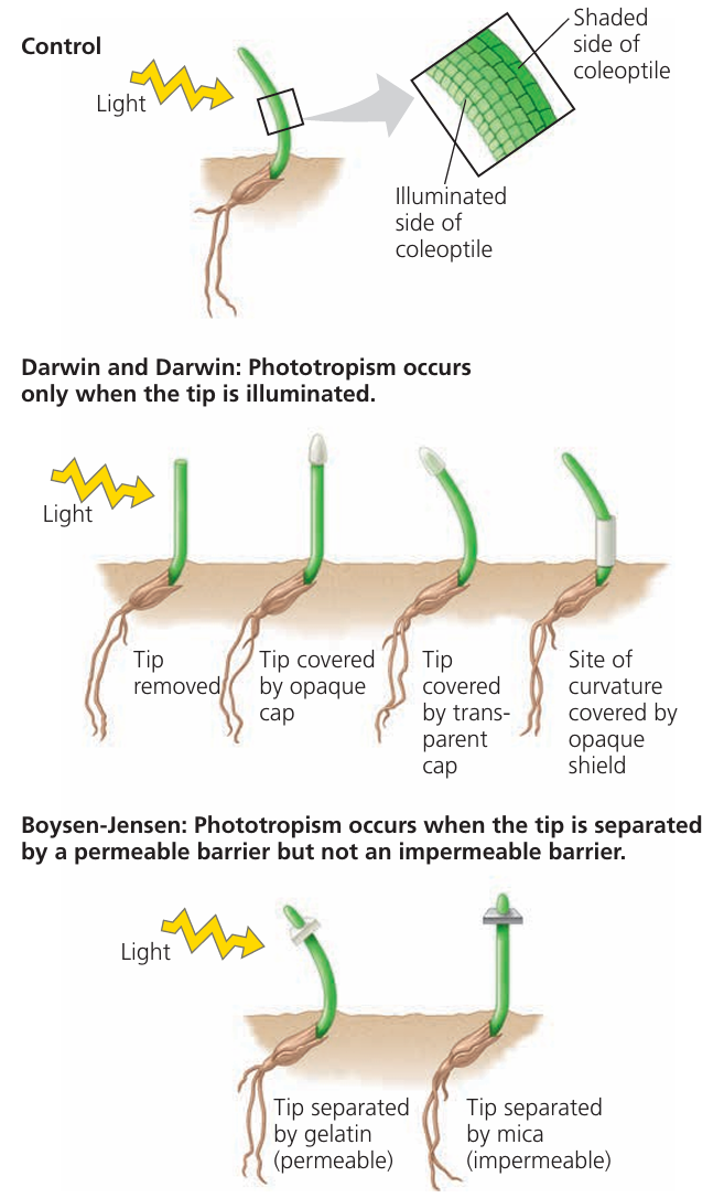| Phototropism | Light | Shoots grow toward light |