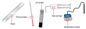 Explanation: Since the experiment measures temperature changes during metal displacement reactions, a thermometer (or temperature probe) is essential to collect the temperature data.