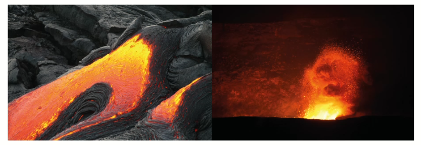 In May 2018 Kílauea, a volcano on Hawaii’s Big Island, erupted. The volcano exploded, releasing lava, ash and toxic gas. Rivers of lava from the crater flowed into the ocean and jets of steam were released. As the lava flowed into the ocean, it cooled rapidly and glass particles were formed. The emissions from the volcano could have caused damage to lungs, eyes and skin.
