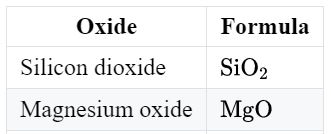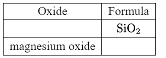 In addition to silicon dioxide (\( \mathrm{SiO}_2 \)), the major components of lava typically include magnesium oxide (\( \mathrm{MgO} \)) and iron oxide (\( \mathrm{FeO} \)). So, the missing information in the table should be: