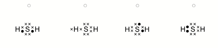 Select the Lewis (dot cross) structure of \(\mathrm{H}_2 \mathrm{~S}\).
