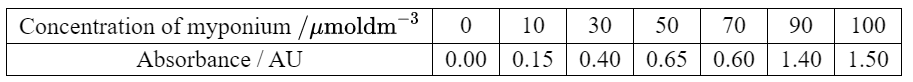 line of best fit to start at (0,0) and go through all points except 70μmol dm-3