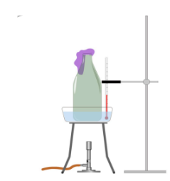 A student conducts an experiment in which she places a balloon over a glass bottle filled with a gas at room temperature. A Bunsen burner is lit and the balloon expands as the temperature of the gas increases.