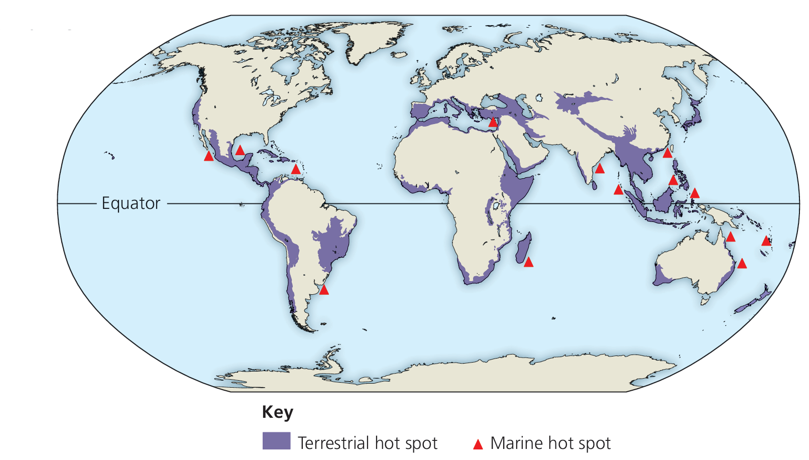 Currently, 36 regions are recognized as biodiversity hotspots. Though they cover just 2.3% of the Earth’s land surface, they contain over 50% of the world’s endemic plant species.