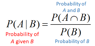 \( P(A|B) = \dfrac{P(A \cap B)}{P(B)} \), where \( P(B) > 0 \).