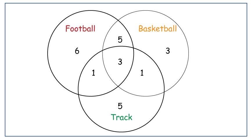 Now, only Football = \( 15 – (5 + 1 + 3) = 6 \)