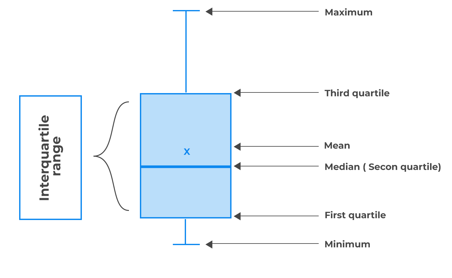 Interquartile Range (IQR): $Q3 − Q1$, measures the spread of the middle $50\%$ of data.