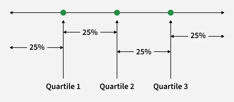 Quartiles divide a set of data into four equal parts after arranging the data in ascending order: