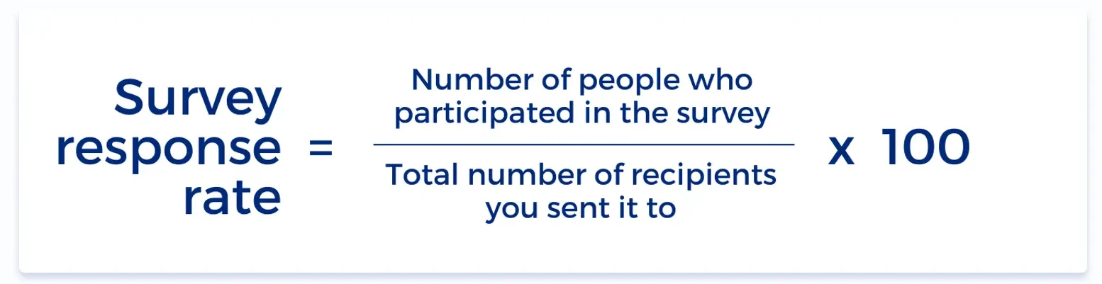 \( \text{Response Rate} = \dfrac{\text{Number of Responses}}{\text{Number of People Contacted}} \times 100\% \)