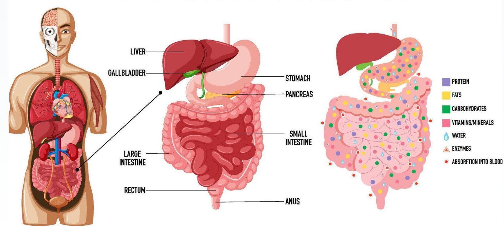 | Proteins | Pepsin, Trypsin | Peptides → amino acids | Stomach, small intestine |