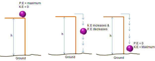 Final Answer: \( \boxed{\text{Potential → Kinetic}} \)