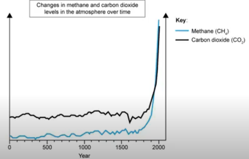 Use information from the diagram and graph above to describe how human activity has led to a change in the carbon cycle.