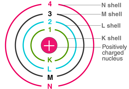 - Electrons move around the nucleus in fixed energy levels called shells.