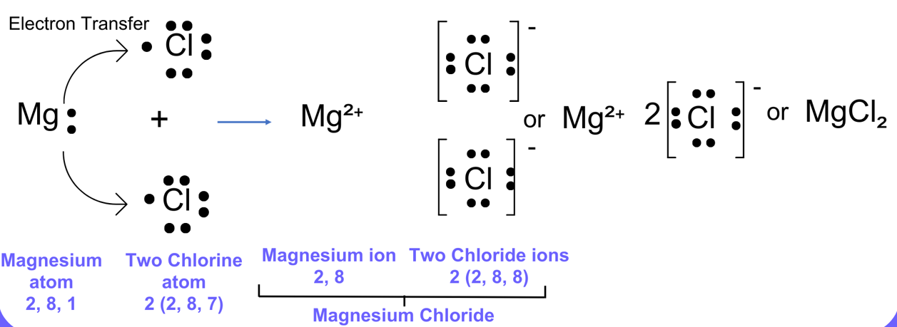 Example – Formation of Magnesium Chloride (\( \mathrm{MgCl_2} \)):