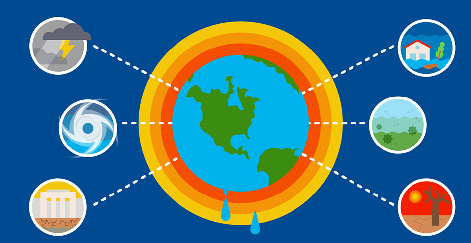 Step 3: Leads to extreme weather events, melting glaciers, and sea-level rise.