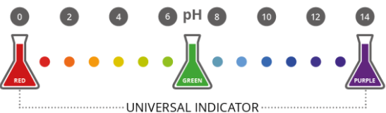 Universal Indicator | Red to Orange | Blue to Purple | 0 – 14 |