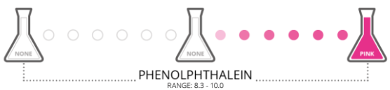Phenolphthalein | Colorless | Pink | 8.2 – 10 |