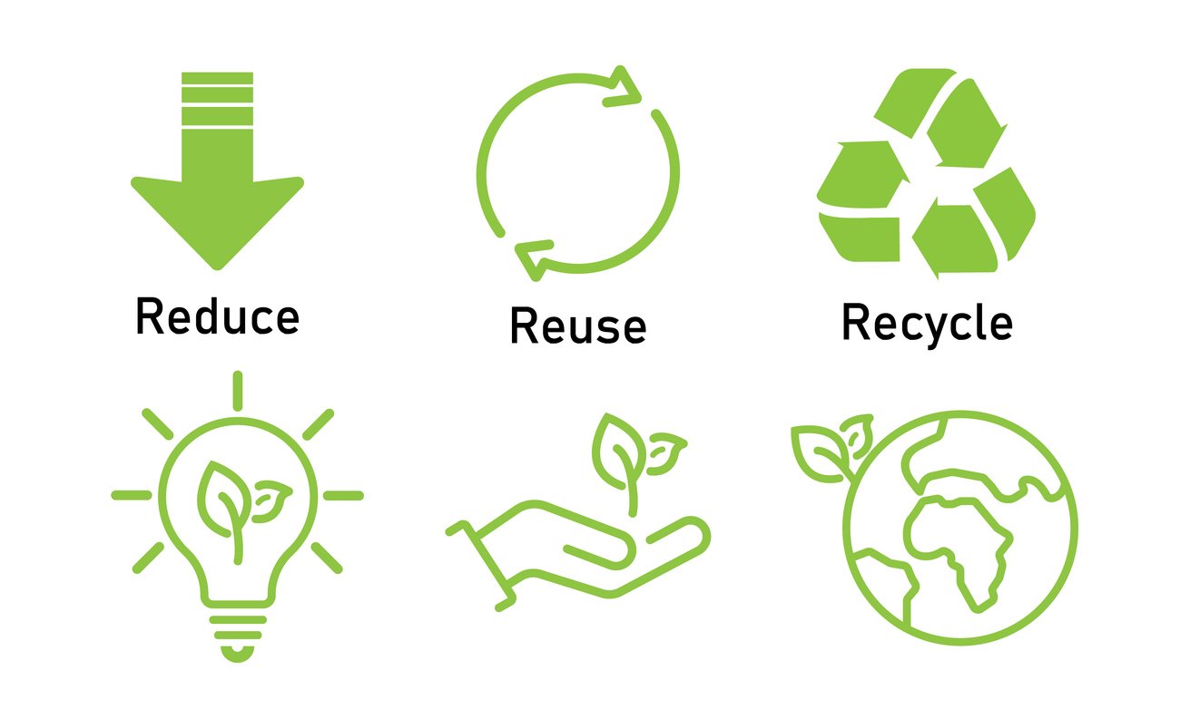 | Reduce | Use fewer resources and generate less waste. | Using reusable bottles instead of disposable plastic ones. |