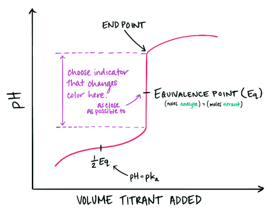 - Indicator chosen should change color within the vertical region near the equivalence point.