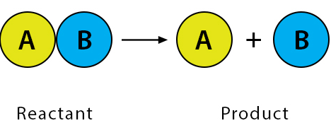 General form: \( \mathrm{AB \rightarrow A + B} \)