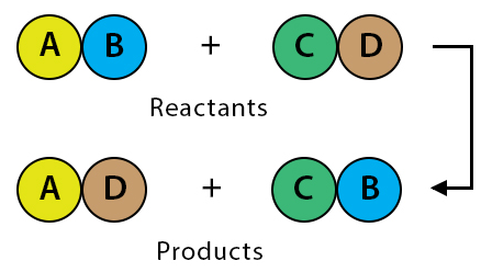 General form: \( \mathrm{AB + CD \rightarrow AD + CB} \)