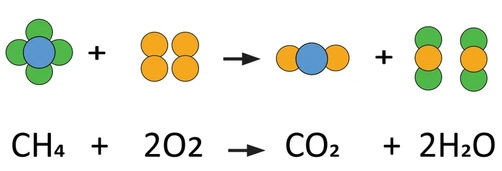 - \( \mathrm{CH_4 + 2O_2 \rightarrow CO_2 + 2H_2O + Energy} \)