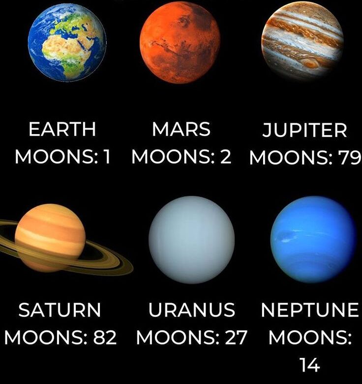 - Saturn: Over 80 moons, including Titan (larger than Mercury).
