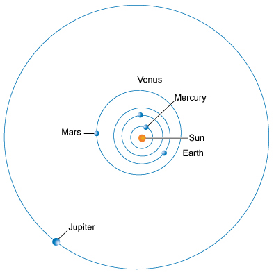 Earth takes 365 days to orbit the Sun. Jupiter takes about 12 years. Explain why.