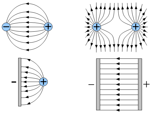 - Uniform Field: Represented by equally spaced, parallel lines (e.g., between parallel plates).