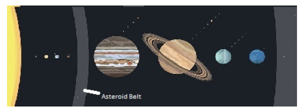 - Pattern: Planet mass increases dramatically beyond the asteroid belt (Jupiter, Saturn, Uranus, Neptune).