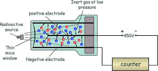 - Geiger–Müller (GM) tube: detects ionisation in a gas, producing a click for each particle.