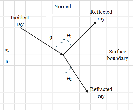 - A ray of light is represented by a straight line with an arrow showing the direction of light propagation.