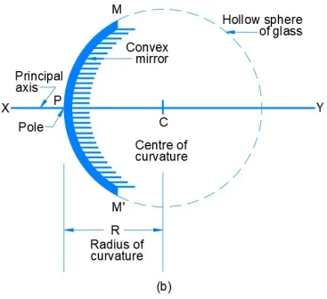 A convex mirror is a spherical mirror with its reflecting surface curved outward.