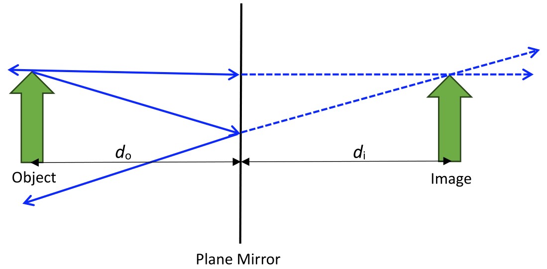 In a plane mirror, the image is formed the same distance behind the mirror as the object is in front.
