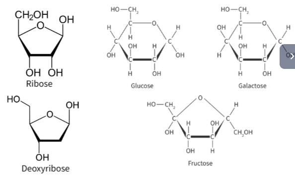 | Glucose | Ring | Energy-rich, 6-carbon sugar |