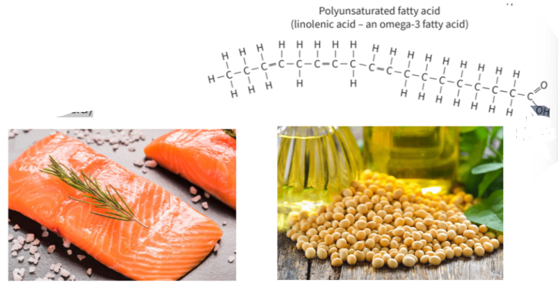 | Polyunsaturated | Fish oils, plant oils (omega-3s, linoleic acid) | Heart and brain function, plant energy storage |