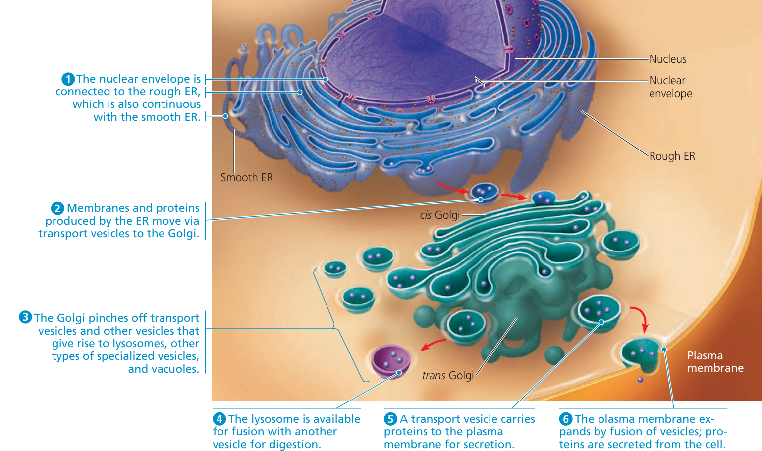 - Secretion: Carry substances out of the cell (exocytosis)