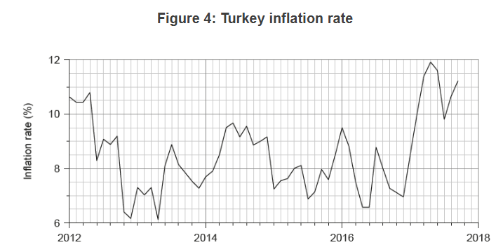 - According to forecasts from the International Monetary Fund (IMF), Turkey’s current account deficit is expected to rise from 4.4 % of gross domestic product (GDP) in 2016 to 5.6 % of GDP in 2017, with real GDP growth falling from 3.3 % in 2016 to 2.9 % in 2017. The current account deficit is perceived to be the biggest problem for Turkey’s economy. An international credit agency has reduced Turkey’s credit rating to “negative” because risks to the country’s credit profile have risen significantly in recent months.