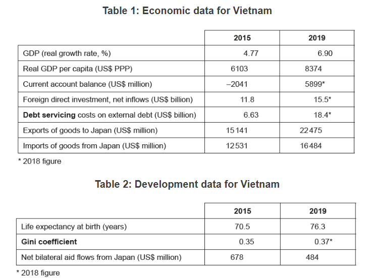 - Japan is the biggest provider of foreign aid to Vietnam and the largest source of FDI. Japanese firms and aid agencies are jointly financing large-scale projects, including port infrastructure and a high-speed railway, which will reduce the Hanoi to Ho Chi Minh journey time from about 35 hours to under six hours. Other Japanese-funded aid projects are in the areas of health care, education, and the environment.