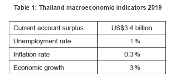 - However, a strong currency can have severe consequences on an export-oriented country like Thailand. Exports account for 65 % of gross domestic product (GDP), and in 2019 exports declined by 7 %. Additionally, the tourism industry, which makes up approximately 20 % of GDP and accounts for 16 % of employment, started to express concern. Economic growth in 2019 was 3 %, down from 4.1 % in 2018.