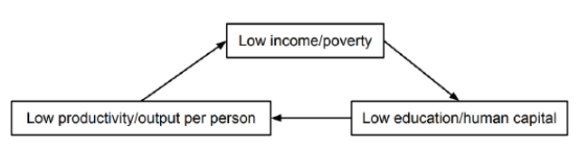 - low incomes lead to low levels of human capital that leads to low productivity that leads to low incomes.