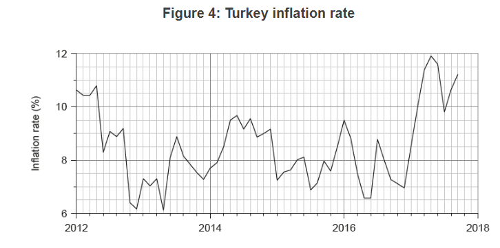 - According to forecasts from the International Monetary Fund (IMF), Turkey’s current account deficit is expected to rise from 4.4 % of gross domestic product (GDP) in 2016 to 5.6 % of GDP in 2017, with real GDP growth falling from 3.3 % in 2016 to 2.9 % in 2017. The current account deficit is perceived to be the biggest problem for Turkey’s economy. An international credit agency has reduced Turkey’s credit rating to “negative” because risks to the country’s credit profile have risen significantly in recent months.